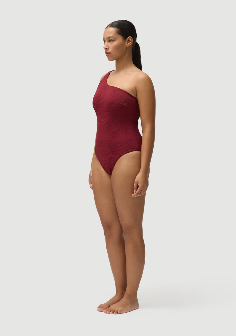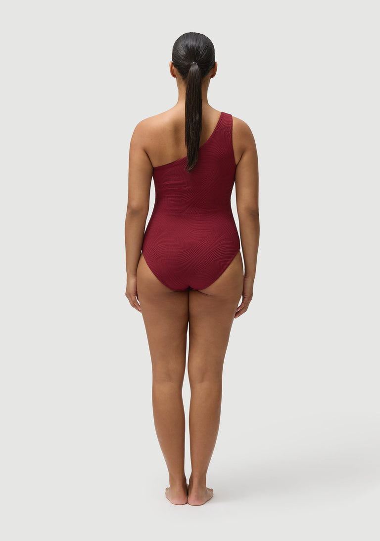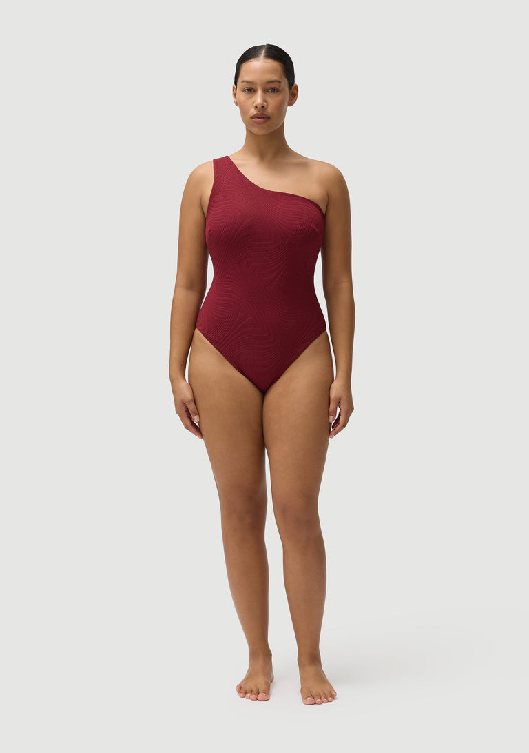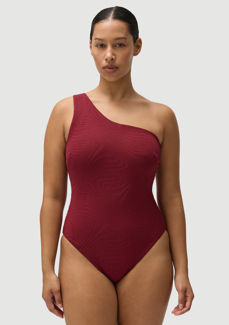 A classic asymmetrical one-piece. Conservative bottom, mid cut leg.  Fully Lined.